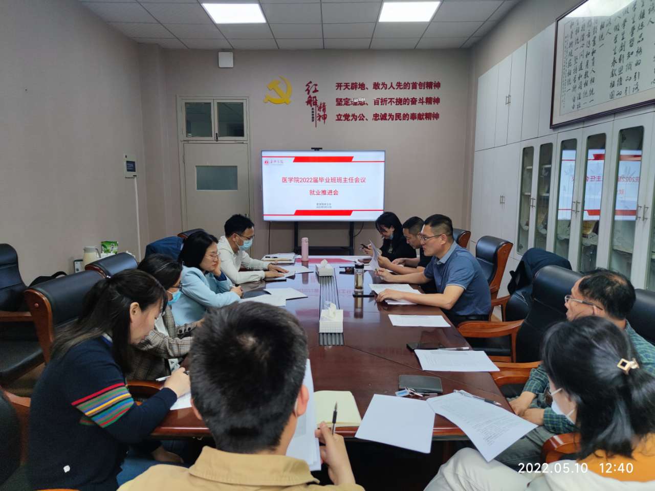 5月10日中午,医华体(中国)召开第二次2022届毕业生就业华体网页版页面登录推进会。华体(中国)党委副书记李联钊、学工办主任赵丽萍、就业辅导员袁佳艳及2022届毕业班班主任参加会议。